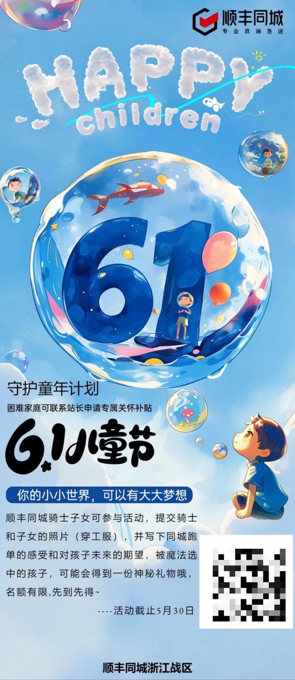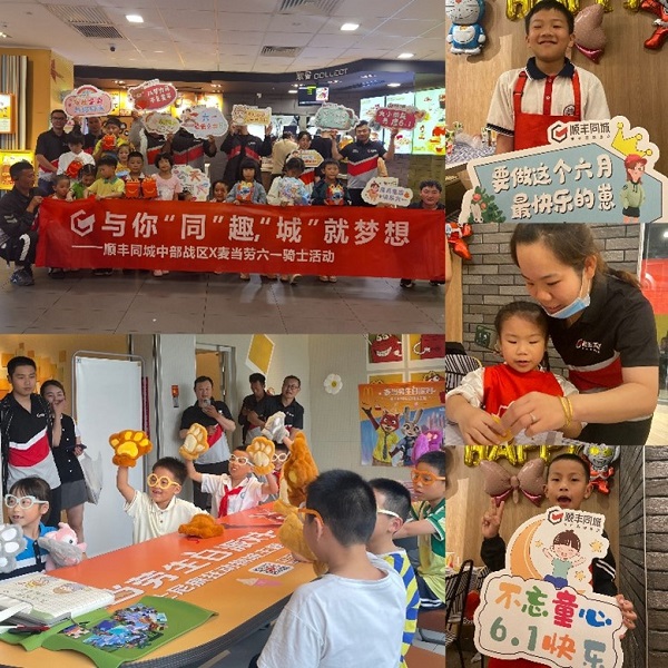 為慶?!傲弧眱和?jié)的到來(lái),順豐同城在全國(guó)范圍內(nèi)精心舉辦了系列活動(dòng)?!傲弧鼻跋?,為體恤山區(qū)留守兒童及困難家庭兒童,順豐同城在東北、廣州、佛山為孩子們送上了別具心意的禮物和關(guān)懷;為了給“騎士”和孩子們創(chuàng)造更多美好回憶,順豐同城在西北、深圳、東莞開(kāi)展了形式多樣的線下騎士親子活動(dòng),在河南、湖北、湖南聯(lián)合當(dāng)?shù)佧湲?dāng)勞舉辦了多場(chǎng)麥當(dāng)勞親子嘉年華活動(dòng),并在浙江推出“守護(hù)童年計(jì)劃”線上活動(dòng),“騎士”可通過(guò)分享親子合照、寫下對(duì)孩子的成長(zhǎng)寄語(yǔ)贏取獎(jiǎng)勵(lì)。此外,“六一”兒童節(jié)當(dāng)天,順豐同城還發(fā)起“曬親子合影,贏神秘好禮”線上活動(dòng),“騎士”通過(guò)視頻號(hào)發(fā)布親子照片并贏取神秘大禮。