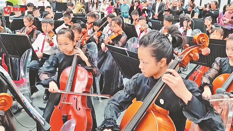 哈爾濱音樂學院少年交響樂團演繹了多首經典曲目。弦樂團合奏《水門橋》和《春天在哪里》旋律優(yōu)美,帶領圍觀群眾穿越四季,感受大自然的美好;管樂打擊樂團合奏的《龍的傳人》《波基上?!贰都t犬》和《熱火打擊樂》激昂熱烈,展現(xiàn)了少年們的活力與激情。
