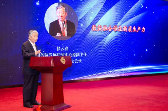 國(guó)務(wù)院發(fā)展研究中心原副主任,中國(guó)企業(yè)評(píng)價(jià)協(xié)會(huì)會(huì)長(zhǎng)侯云春作 “數(shù)實(shí)融合催生新質(zhì)生產(chǎn)力”主題演講。