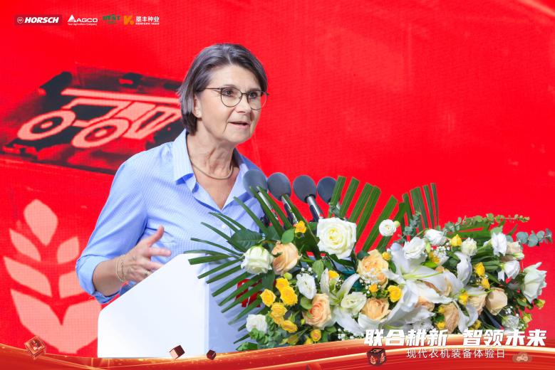 本次活動旨在全面展示現(xiàn)代農(nóng)機裝備技術(shù)的最新突破,推動行業(yè)的深度融合與創(chuàng)新發(fā)展。豪獅創(chuàng)始人康妮麗·豪獅(Cornelia Horsch)、豪獅全球銷售總經(jīng)理馮斯拓(Christoph von Starck)、豪獅中國總經(jīng)理呂曉晴、愛科(中國)投資有限公司中國區(qū)市場高級經(jīng)理何葉、北京百斯特草業(yè)有限公司總經(jīng)理邰建輝蒞臨本次活動。