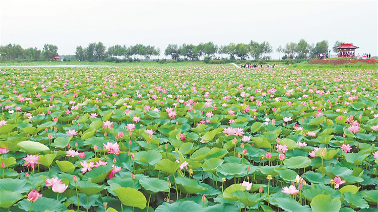 走進位于北林區(qū)雙河鎮(zhèn)西南村的正大稻田公園,荷花映日,稻始抽穗,田間不時有陣陣蛙鳴。藍天白云之下,綠浪翻滾,游人漫步其間交談著觀光感受,一幅寧靜安適的鄉(xiāng)村田園畫卷徐徐展開?!霸陂e暇的時候來到這里散散步,感受戶外樂趣和田園風景,感覺身心都很放松、很快樂?!庇慰挖w忠塔說。