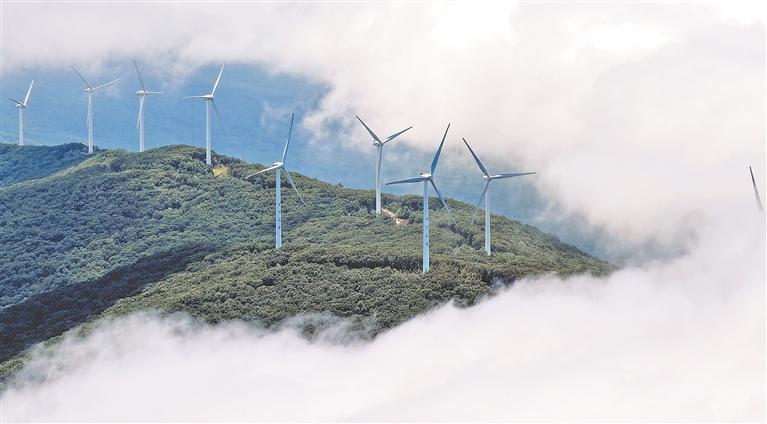 近日,饒河縣大頂子山森林公園頻現(xiàn)云海美景。清晨,海拔801米的大山被密密的白云遮擋得嚴(yán)嚴(yán)實(shí)實(shí),透過云隙,偶爾會(huì)看到幾座巨大的風(fēng)機(jī)在山脊上迎風(fēng)轉(zhuǎn)動(dòng)。不經(jīng)意間,濃云消散,藍(lán)天如洗,朵朵白云飄過山頭,將《烏蘇里船歌》中“白云飄過大頂子山”的場(chǎng)景演繹得活靈活現(xiàn)。站在山頂上,一望無(wú)際的三江沃野和烏蘇里江“一水東西分兩國(guó)”壯闊美景盡收眼底。