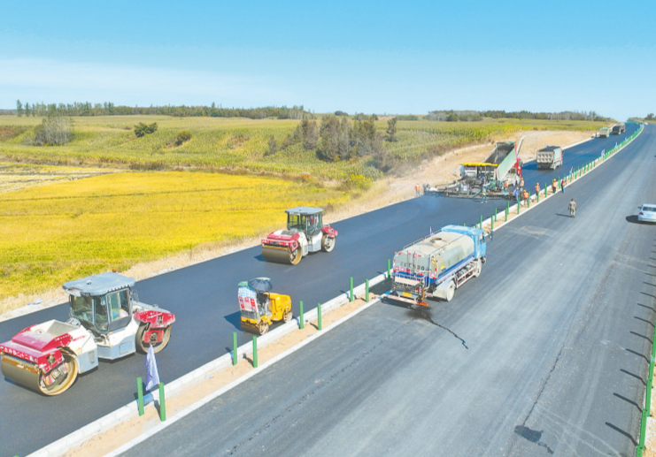 本報訊(丁旭 記者郭俊峰)秋高氣爽,施工黃金期。近日,記者在鐵科高速公路方正至延壽尚志界段項(xiàng)目K214瀝青攤鋪施工現(xiàn)場看到,大型攤鋪機(jī)正在進(jìn)行路面中面層的瀝青攤鋪,兩臺光輪壓路機(jī)對已攤鋪的瀝青進(jìn)行碾壓,工人各負(fù)其責(zé),有序施工。