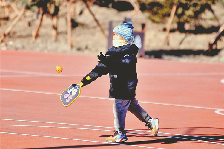 孩子在公園內(nèi)打球。本報記者 蘇強(qiáng)攝