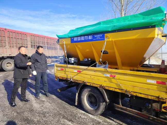 駐村工作隊第一時間聯(lián)系村“兩委”召開緊急會議,積極制定融冰除雪方案。同時工作隊充分發(fā)揮行業(yè)優(yōu)勢和責(zé)任擔(dān)當(dāng),隊長張馳向密山市交通運輸局黨組進(jìn)行情況匯報,得到局黨組的大力支持,聯(lián)合交通運輸局公路事業(yè)發(fā)展中心,在設(shè)備和物料緊缺的情況下,為村里出動了融雪撒布機(jī),并籌措了9余噸融雪劑供村里免費使用。