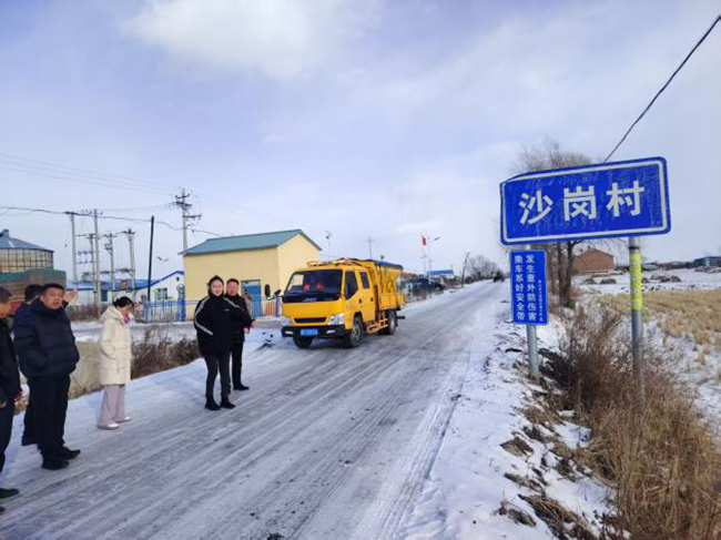 1月6日早8點,密山市交通運輸局派來專業(yè)的融雪撒布機(jī)準(zhǔn)時到達(dá)沙崗村。各個小組長帶領(lǐng)融雪撒布機(jī)在村內(nèi)主要道路、陡坡、彎道等易結(jié)冰路段撒布融雪劑,配合人工清掃,有效加速了冰雪消融,提升了道路安全性。
