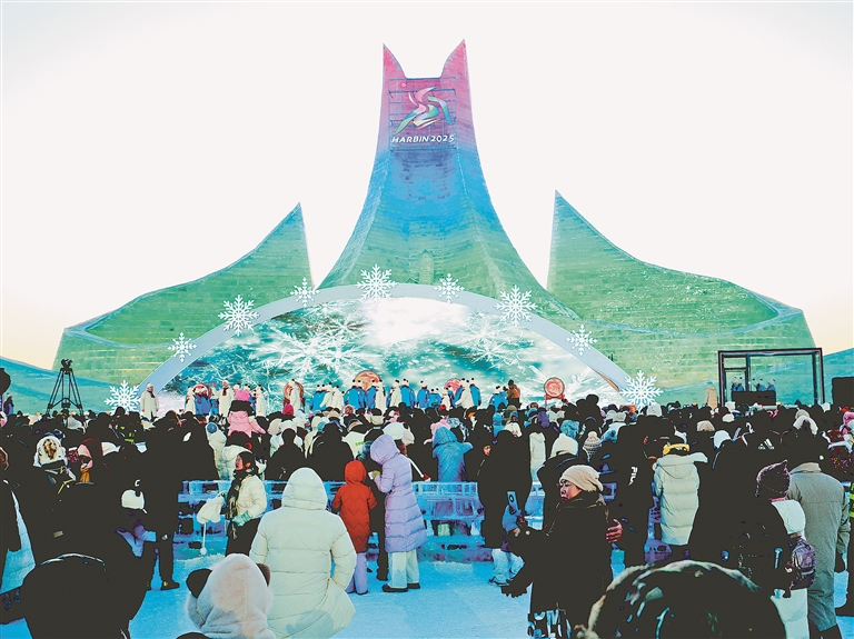 精美與靈動(dòng)相互交織,園區(qū)內(nèi)亞冬會(huì)氛圍濃厚。“我們?cè)趫@區(qū)內(nèi)看到很多亞冬會(huì)元素的冰雪景觀,像雪雕‘濱濱’‘妮妮’、會(huì)徽大地景觀等,準(zhǔn)備逐個(gè)打卡?!鄙綎|游客許多開(kāi)心地說(shuō)。