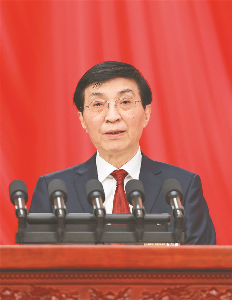 王滬寧代表政協(xié)第十四屆全國委員會常務(wù)委員會,向大會報告工作。