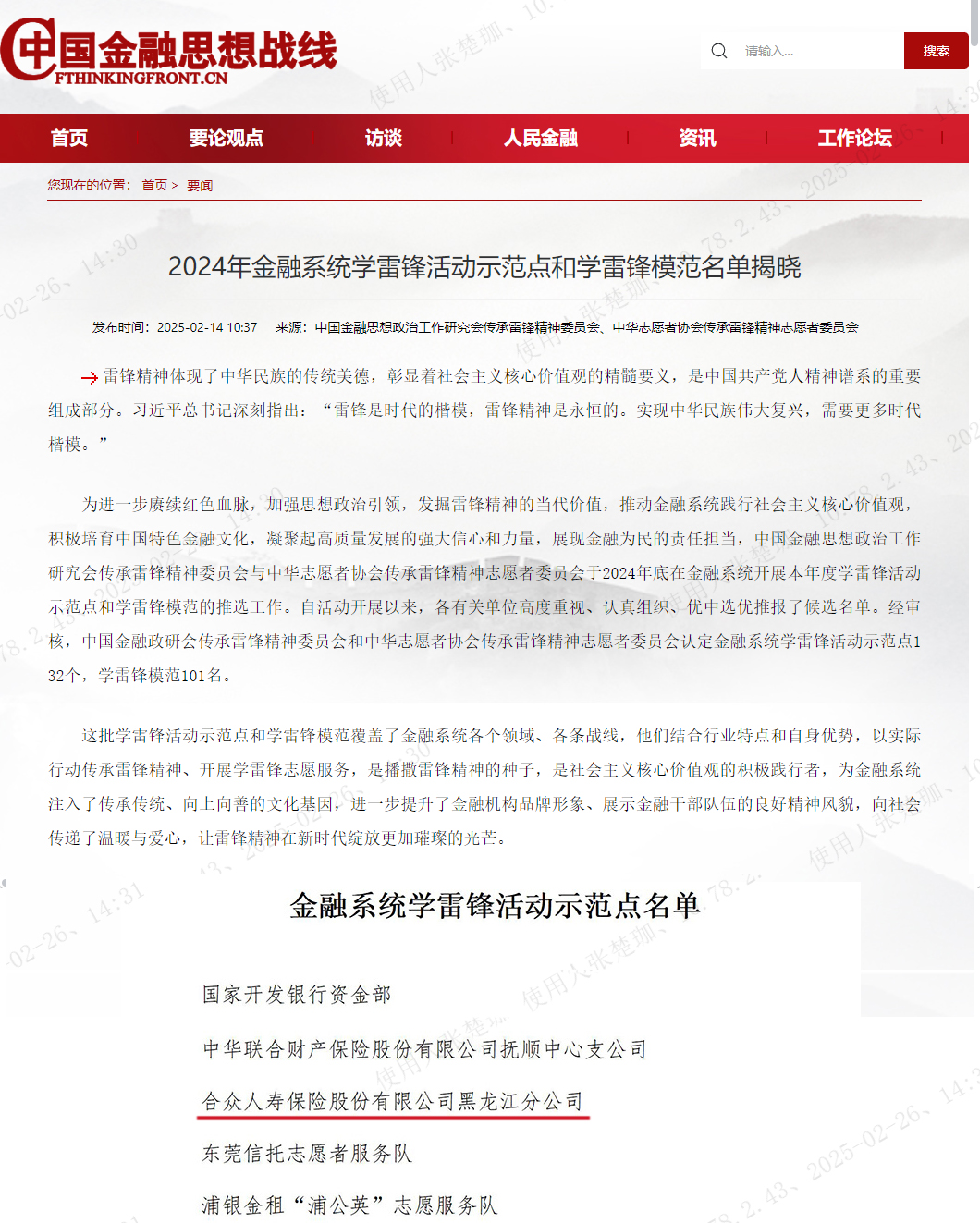 在2024年金融系統(tǒng)學(xué)雷鋒活動(dòng)示范點(diǎn)和學(xué)雷鋒模范評(píng)選中,合眾人壽黑龍江分公司黨支部脫穎而出,成功獲評(píng)學(xué)雷鋒示范點(diǎn),成為合眾全系統(tǒng)唯一獲此殊榮的單位。這一成績(jī)的取得,不僅是合眾人壽黑龍江分公司的榮耀,更是整個(gè)合眾系統(tǒng)的驕傲,為行業(yè)樹(shù)立了榜樣。