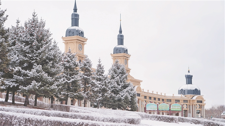 經(jīng)過(guò)一夜的降雪,27日,哈爾濱市的街頭、樹(shù)木、房頂、車(chē)頂都積了厚厚一層雪,整座城市變成了一個(gè)白色的童話世界。