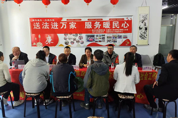 黑龍江經(jīng)濟(jì)網(wǎng)訊(裴桐 單琳琳 劉佳宇 記者魏?。樘岣呱鐓^(qū)居民對(duì)法律法規(guī)的知曉率,增強(qiáng)居民法治意識(shí)和法律素養(yǎng),提升依法維權(quán)能力,5月20日,由哈爾濱市香坊區(qū)人力資源和社會(huì)保障局、香坊區(qū)司法局、香坊區(qū)通天街道辦事處指導(dǎo),香坊區(qū)通天街道果園社區(qū)聯(lián)合香坊區(qū)紅旗社工勞動(dòng)爭(zhēng)議調(diào)解工作室、香坊區(qū)哈平法律服務(wù)所和圣德社會(huì)工作服務(wù)中心共同開(kāi)展“與法同行零距離 法治社區(qū)共締造”普法宣傳活動(dòng)。通天街道辦事處主任徐東影、區(qū)人社局副局長(zhǎng)楊軍、區(qū)仲裁院院長(zhǎng)王建松參加了普法講座。