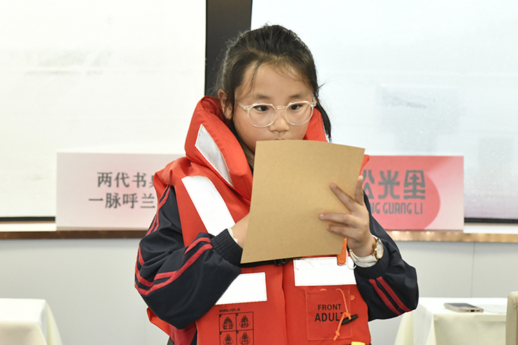活動在《呼蘭河傳》朗讀片段的音曲播放中拉開帷幕。30余位文學(xué)愛好者與青少年閉眸冥想,在江水潺潺聲中走進(jìn)蕭紅筆下的呼蘭河世界。15組家庭依次分享對蕭紅及其作品的認(rèn)知,動情朗讀《呼蘭河傳》經(jīng)典段落——當(dāng)“嚴(yán)冬一封鎖了大地的時(shí)候”等文字在江面上回蕩,百年前的市井煙火與眼前的江河風(fēng)光悄然重疊。