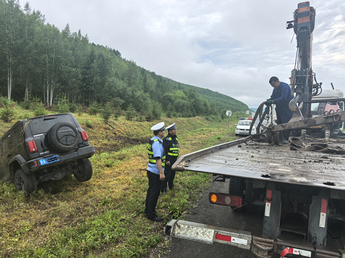 大興安嶺地區(qū)行署(森林)公安局圖強分局交警大隊接警后迅速趕赴現(xiàn)場展開救援。事發(fā)時路面濕滑,能見度較低,車輛墜落位置較深,圖強分局交警大隊民警迅速展開救援工作,并立即聯(lián)系拖車將事故車輛拖離現(xiàn)場。
