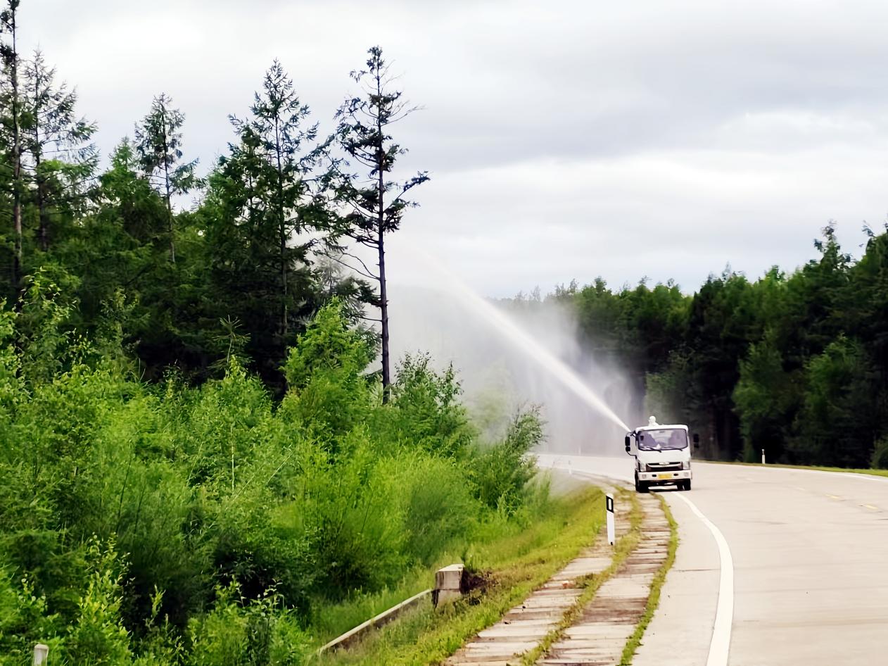 噴藥車(chē)在道路兩側(cè)進(jìn)行噴霧作業(yè)(王微 攝)