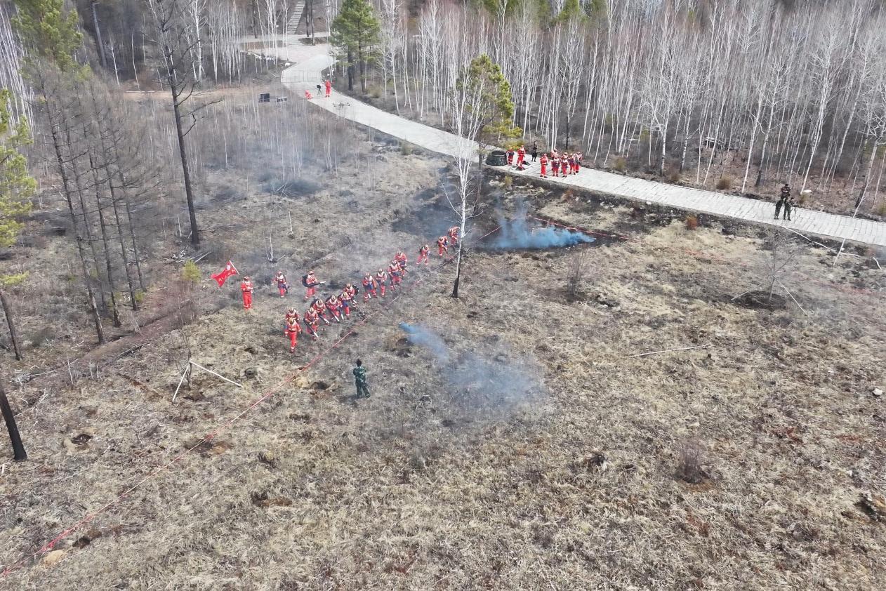 韓家園林業(yè)局森林消防一大隊在開展林火處置協(xié)同作戰(zhàn)演練(康志鵬 攝)