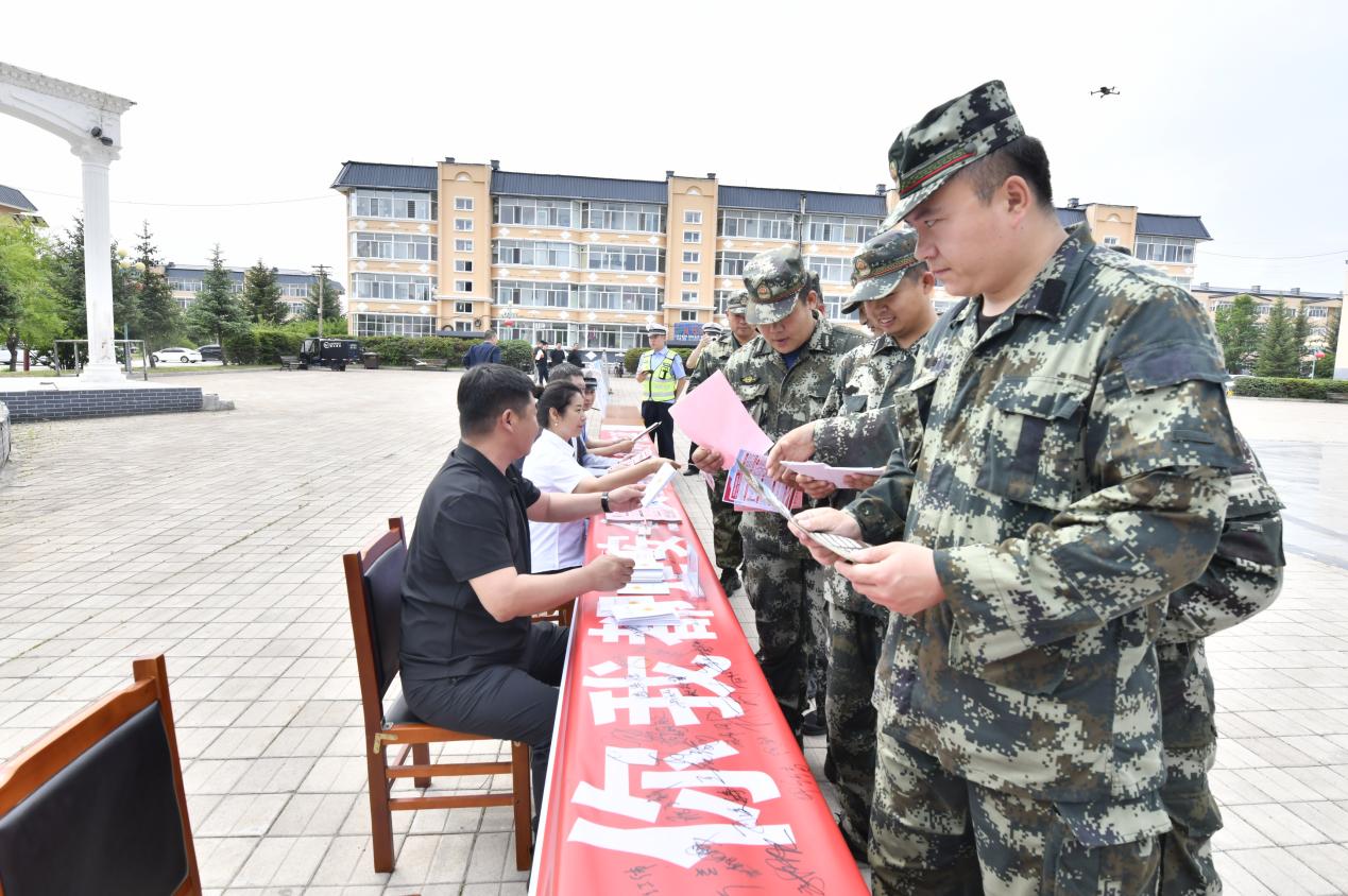 林業(yè)局“安全生產(chǎn)月咨詢?nèi)铡被顒蝇F(xiàn)場,工作人員在向職工群眾發(fā)放安全宣傳手冊(康志鵬 攝)