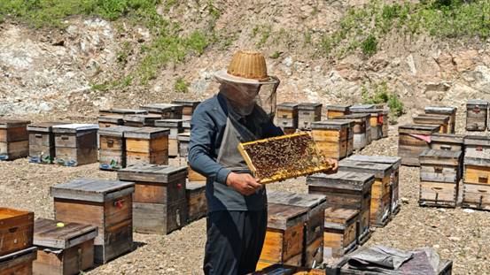古利庫(kù)林場(chǎng)職工正在查看蜂蜜成熟度(李涵鈺 攝)