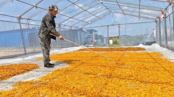 古利庫(kù)林場(chǎng)職工正在晾曬金蓮花(趙子敬 攝)