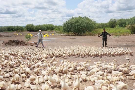 江邊林場(chǎng)職工正在驅(qū)趕大鵝覓食(趙子敬 攝)