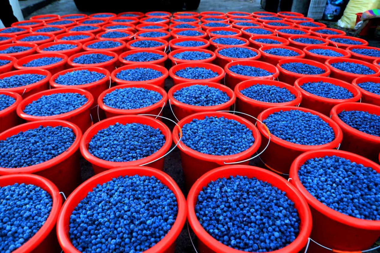 誘人的阿木爾林業(yè)局手采的野生藍(lán)莓果(王力 攝)