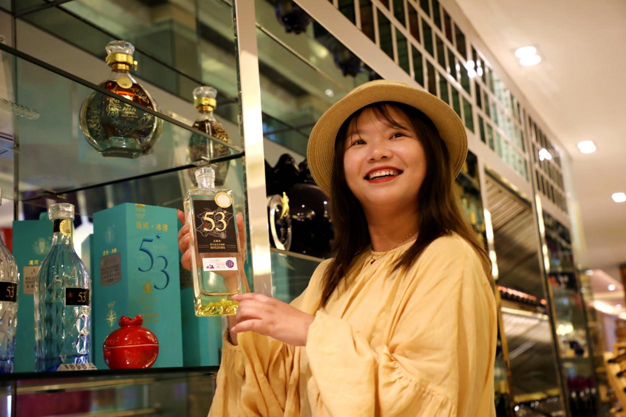 網(wǎng)名為“簡簡環(huán)游記”的網(wǎng)絡達人被北極冰藍莓酒莊生產(chǎn)的北緯53度藍莓蒸餾酒所吸引,為其主動代言(王力 攝)