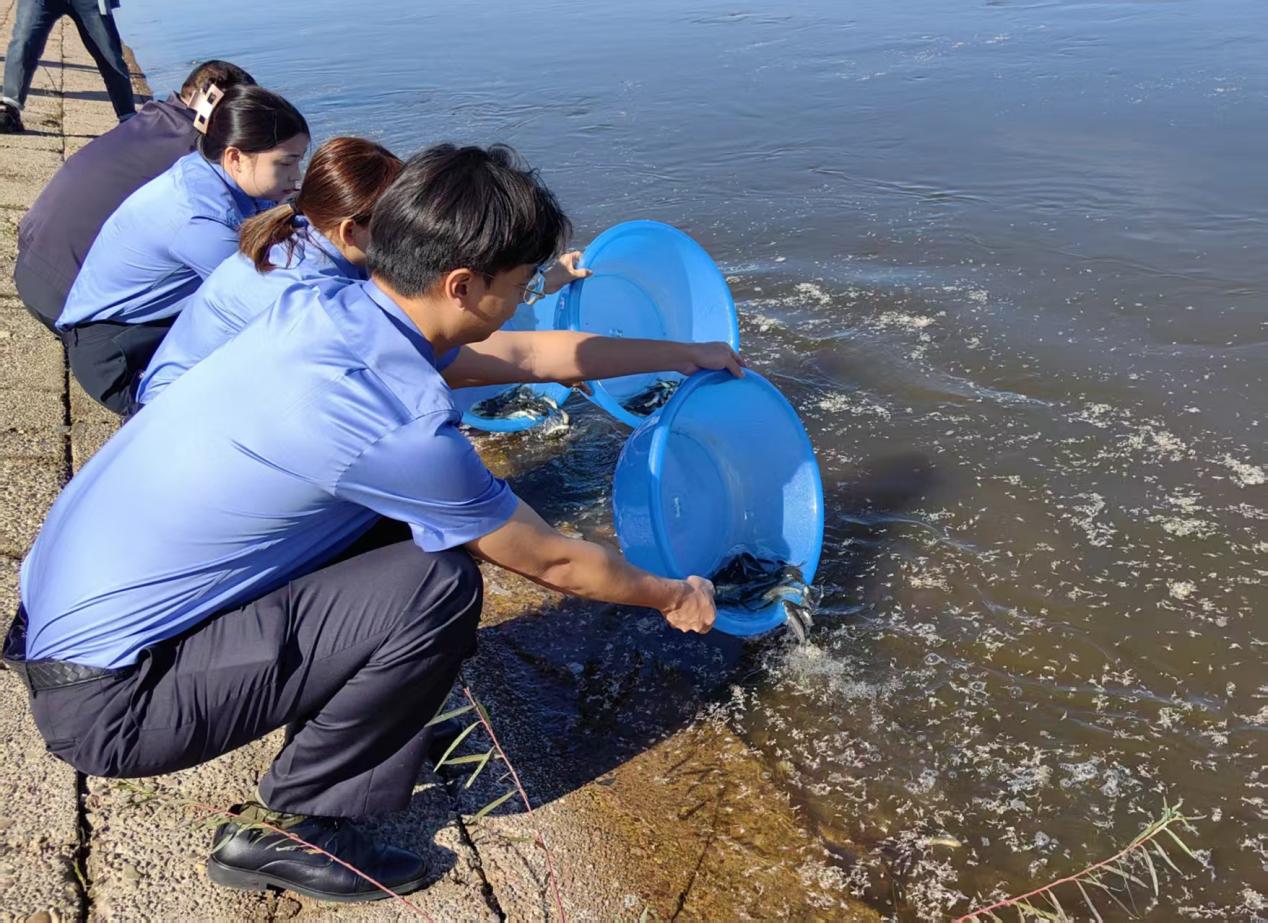 活動現(xiàn)場,工作人員拿起水桶,將草魚、鱖魚等魚種共230萬尾魚苗投放進(jìn)河道中,此次放流魚苗生命力和適應(yīng)能力強(qiáng),能有效修復(fù)黑龍江河流域魚類種群數(shù)量,促進(jìn)各類水生生物結(jié)構(gòu)之間的平衡,實現(xiàn)“放魚養(yǎng)水、以魚護(hù)河”的生態(tài)效益。