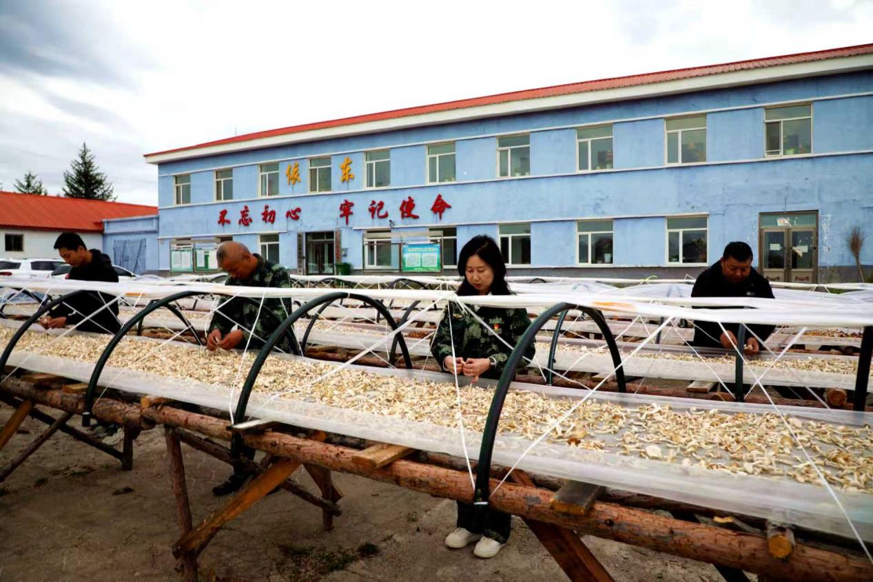 阿木爾林業(yè)局依東林場(chǎng)職工精心管理晾曬的毛尖蘑(王力 攝)