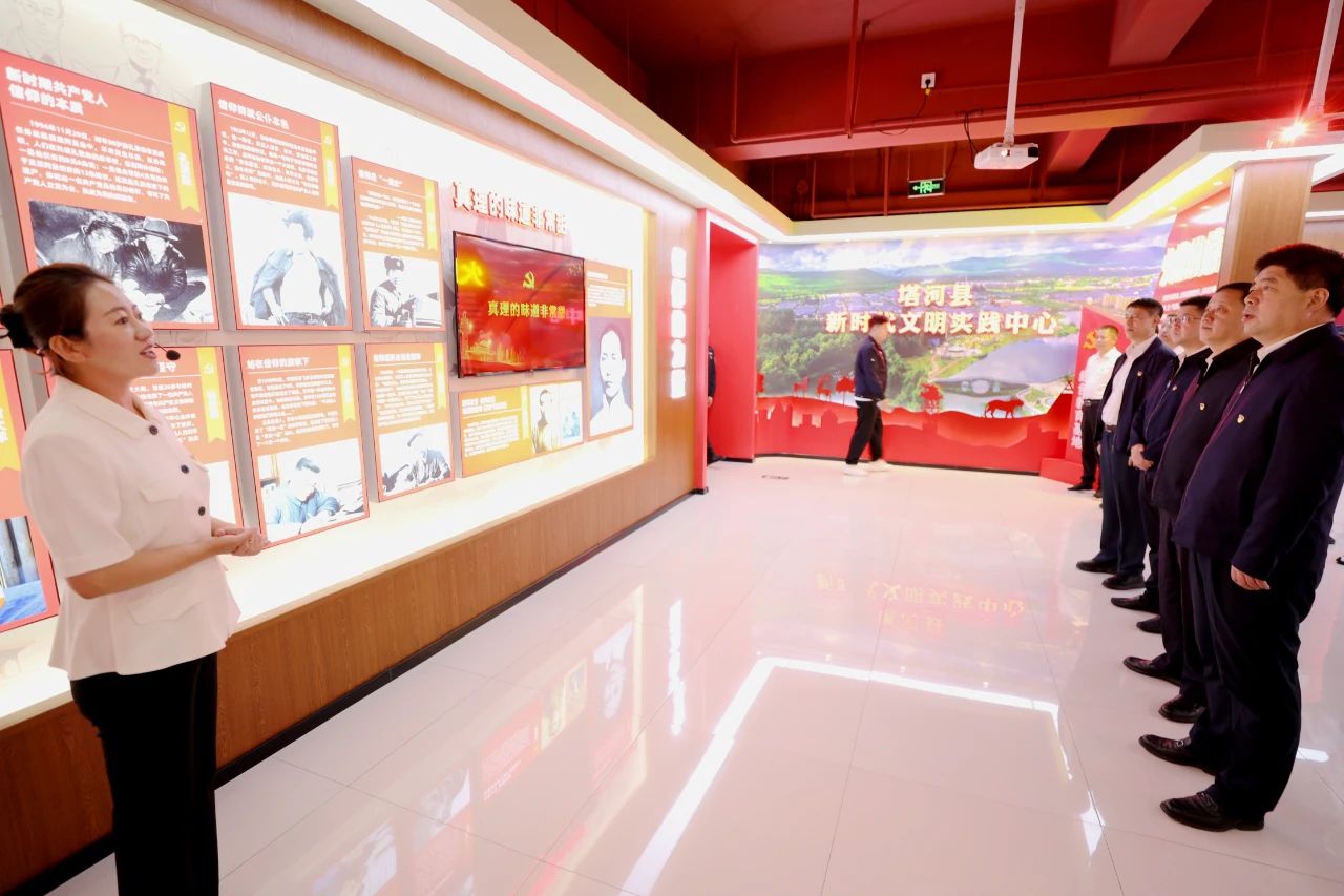 活動中,雙方人員首先走進塔河新時代文明實踐中心,在講解員的引導下,大家依次參觀了“火熱的信仰”“不忘的初心”“文明的塔河”三個篇章,通過歷史圖片、文物展品、場景復原及多媒體展示等形式,深入學習革命先輩們的英勇事跡和艱苦奮斗歷程,深切感悟紅色文化的深厚底蘊和偉大精神力量。