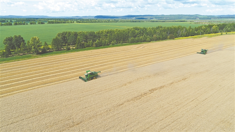錦河農(nóng)場(chǎng)有限公司高寒小麥迎來收獲季。 王洪玲 金昌明攝