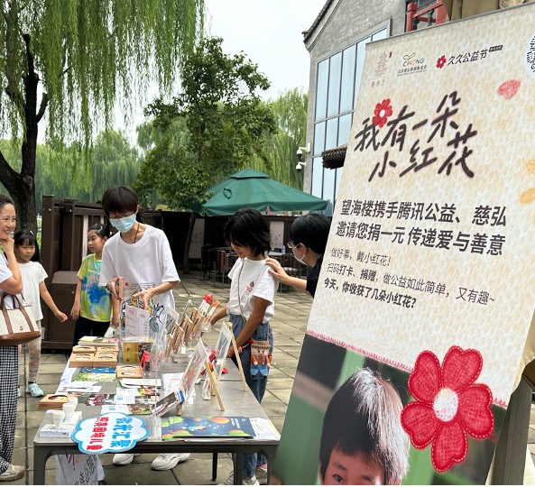 北京慈弘慈善基金會在后海望海樓舉辦“小紅花公益市集”,通過義賣來支持鄉(xiāng)村學校圖書角建設,受到市民和游客們的歡迎