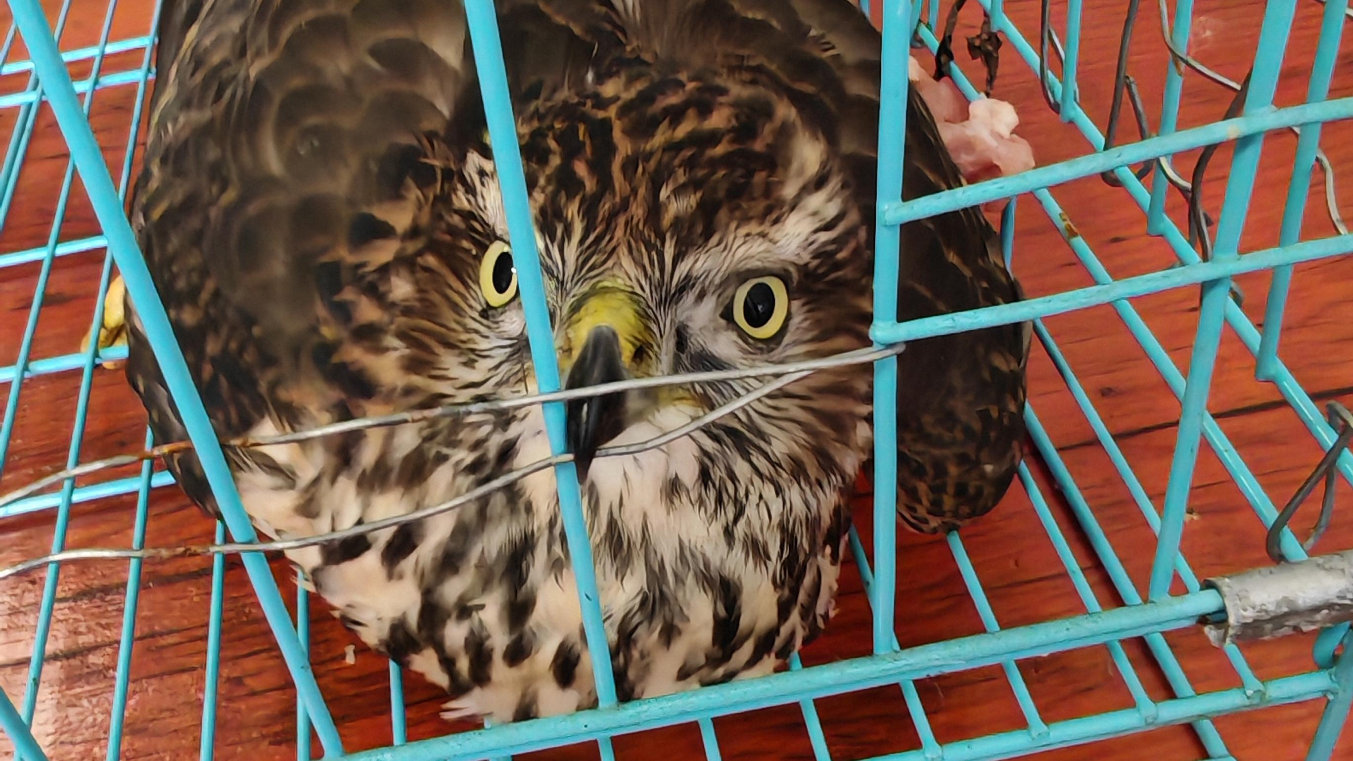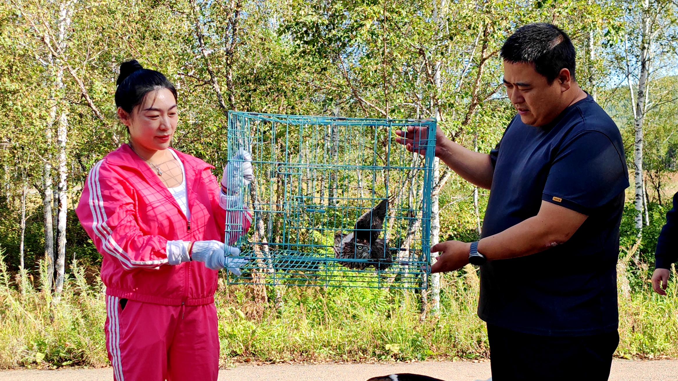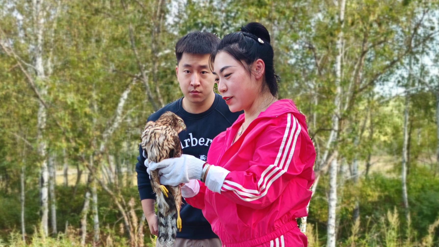 加格達奇林業(yè)局百泉谷景區(qū)工作人員將鷹隼移交到松林林業(yè)和草原局進行康復(fù)救助(趙子敬 攝)