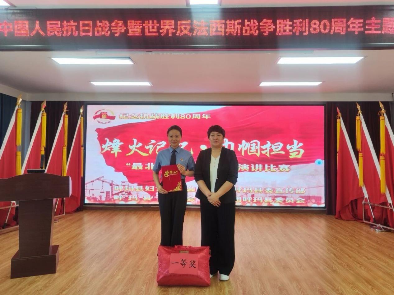 黑龍江經(jīng)濟網(wǎng)訊(竇英杰 記者馬朝林)為紀(jì)念中國人民抗日戰(zhàn)爭暨世界反法西斯戰(zhàn)爭勝利80周年,9月5日,呼瑪縣舉辦“烽火記憶·巾幗擔(dān)當(dāng)——最北巾幗紅”主題演講比賽。呼瑪縣人民檢察院干警積極投身主題演講比賽,以飽滿的熱情、激昂的語言,講述著那段波瀾壯闊的歷史。