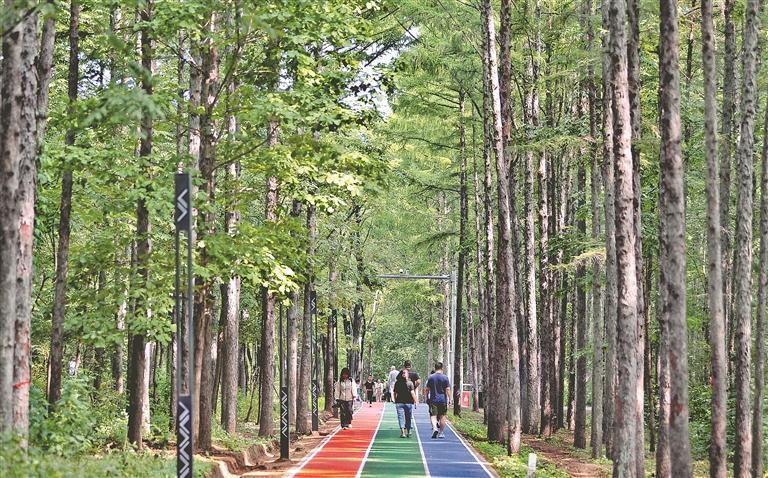 一位在這里跑步的附近居民說,林間空氣清新,負氧離子含量高,對人體有很大益處。一邊跑步健身,一邊觀賞林間美景,感覺舒服又愜意。