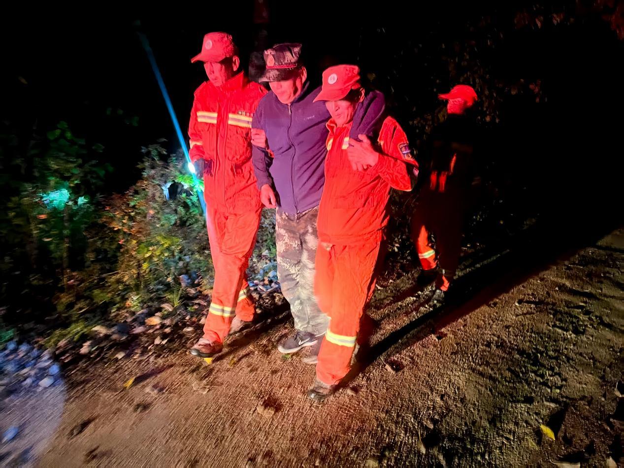 “張師傅!聽到請回應!”的呼喊聲在山林暴雨中回蕩,顯得格外急促。經(jīng)不懈努力,當晚21時30分,救援隊員在雨中聽到了已出現(xiàn)失溫癥狀的張師傅的微弱回應,并迅速成功施救,為他提供熱水、食物和衣物,待其逐漸恢復體力后安全護送下山。