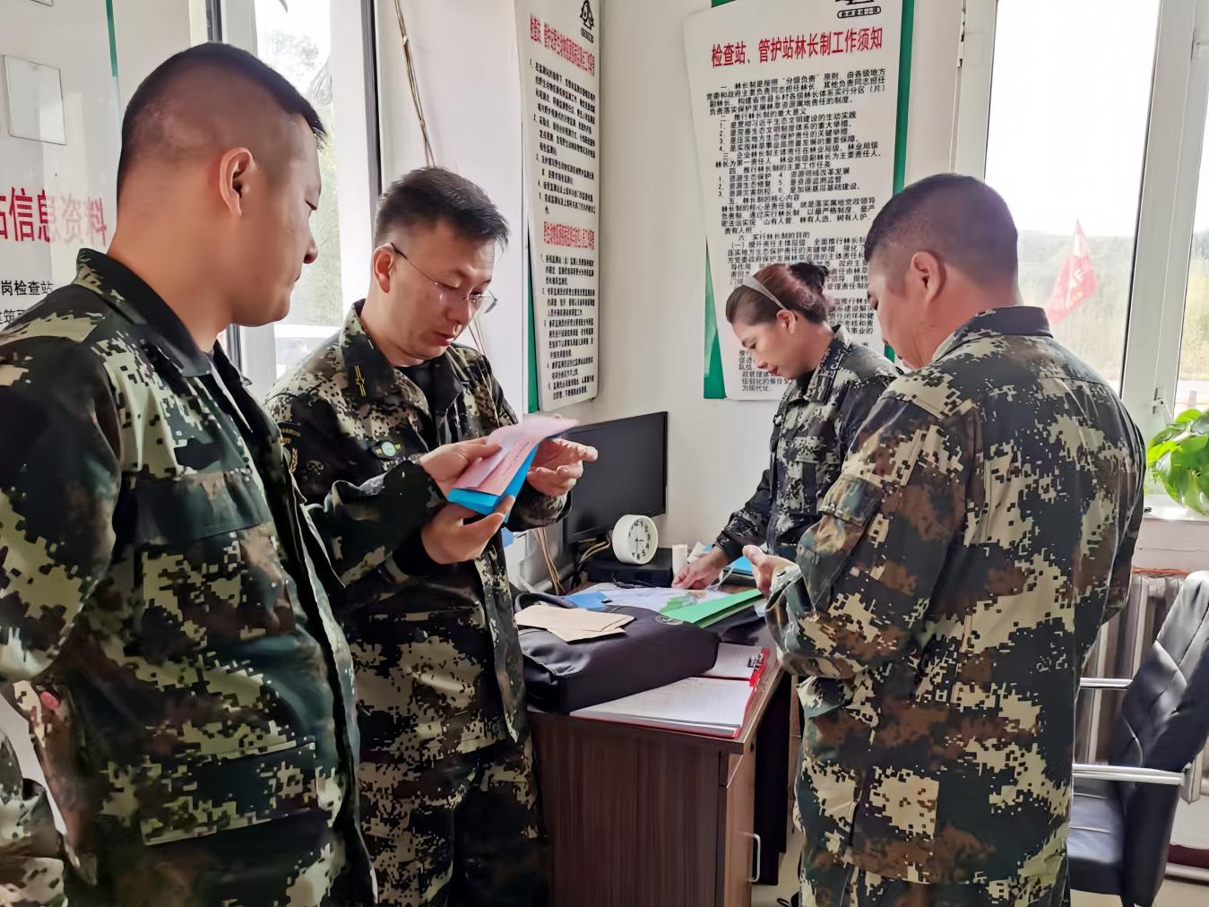 集團(tuán)評(píng)審組檢查管護(hù)站的內(nèi)業(yè)建設(shè)(張凱強(qiáng) 攝)