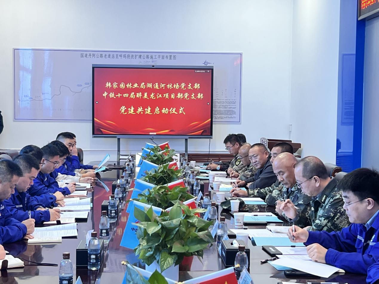 雙方在中鐵十四局醉美龍江項目部會議室舉行了黨建共建啟動儀式,黨組織負(fù)責(zé)人分別介紹了各自單位的支部建設(shè)、重點任務(wù)開展情況,就黨員作用發(fā)揮、森林防火任務(wù)、資源保護態(tài)勢、職工雙增、施工安全等工作進行了交流探討,形成了“聚合力、守底線、互幫扶、齊發(fā)展”的融合發(fā)展思路。