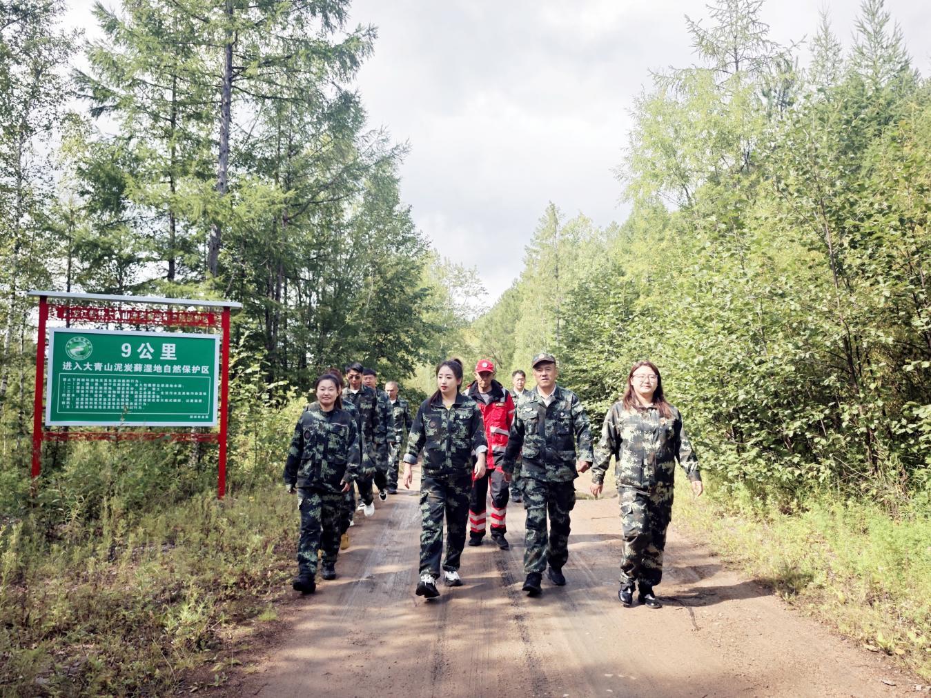 塔爾根林場(chǎng)機(jī)關(guān)工作人員在管護(hù)員帶領(lǐng)下開展巡護(hù)實(shí)踐(李輝 攝)