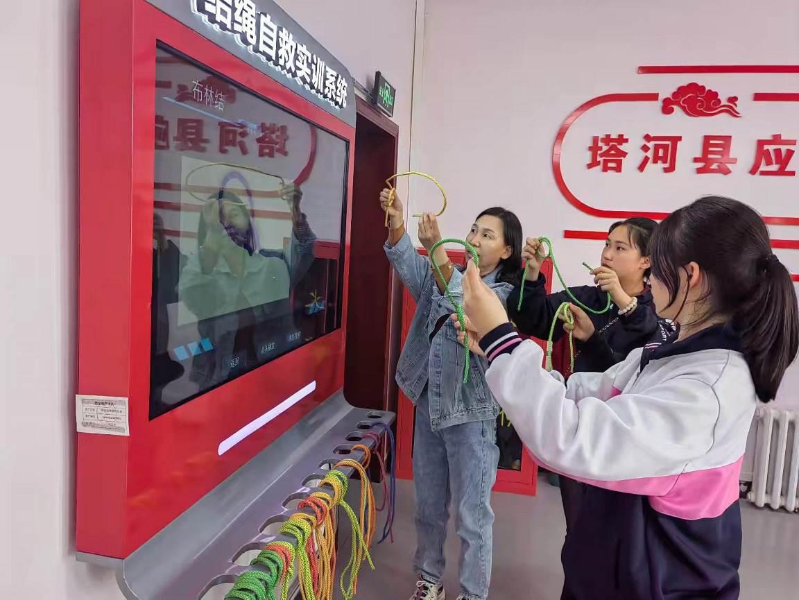 在實景體驗環(huán)節(jié),“安全結(jié)系法教學(xué)”成為孩子們最感興趣的內(nèi)容。綜合實踐學(xué)校教師現(xiàn)場演示雙套結(jié)、逃生結(jié)等實用繩結(jié)的系法,手把手指導(dǎo)孩子們操作,糾正打結(jié)過程中的細節(jié)問題,確保每個孩子都能獨立完成繩結(jié)系制,掌握關(guān)鍵時刻的逃生自救技能。同時,孩子們還參觀了基地內(nèi)的消防器材展示區(qū),近距離認識滅火器、消防服等裝備,進一步拉近與消防工作的距離?;顒游猜?,智能消防知識搶答環(huán)節(jié)將氛圍推向高潮。孩子們圍在互動答題機器前,緊盯屏幕上的題目,紛紛按下?lián)尨疰I。“電器著火能不能用水澆滅?”“逃生時應(yīng)該彎腰還是直立行走?”面對一道道貼近生活的題目,孩子們積極思考、踴躍作答,答對的同學(xué)興奮分享思路,答錯的同學(xué)認真聆聽講解,在趣味互動中鞏固了所學(xué)知識,真正讓消防安全知識入腦入心。