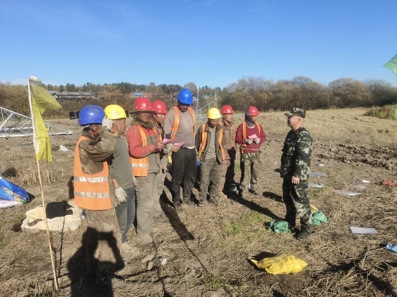 督導組檢查野外作業(yè)監(jiān)管情況并對施工人員面對面講解防火法規(guī)(孟鵬翔 攝)