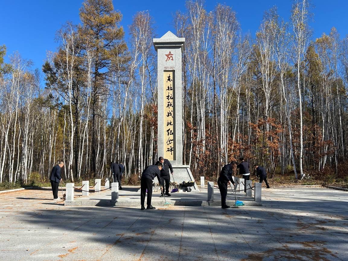 9時40分,全體參與人員乘車前往革命烈士紀(jì)念碑墓地,開啟致敬英烈活動?;顒蝇F(xiàn)場,全體人員手持清掃工具,認(rèn)真清理紀(jì)念碑周圍的落葉與雜草,以實際行動表達(dá)對革命先烈的緬懷與敬意。
