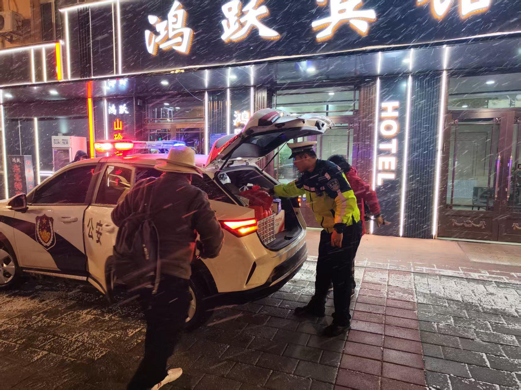 了解到這一情況后,民警立即安撫游客的情緒。由于路況不佳,為確保安全,民警幫助二人聯(lián)系呼瑪縣住宿并送到住處。同時,民警叮囑司機,遇到降雪天氣,務必控制車速、減速慢行,以免發(fā)生意外。