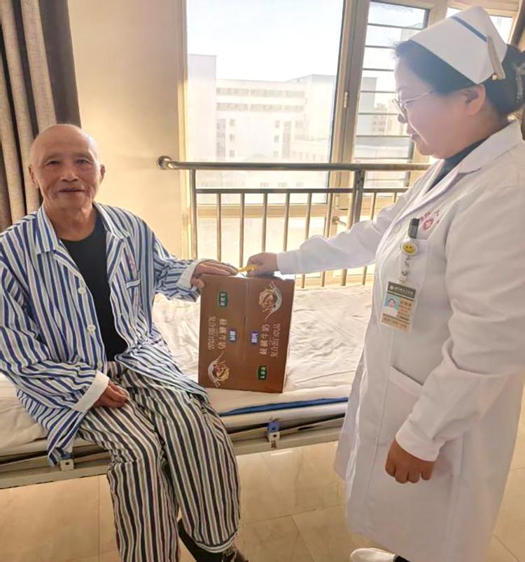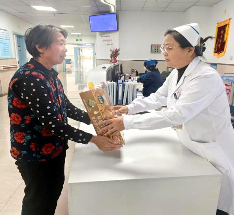 禮品雖小,情意濃重。開(kāi)展活動(dòng)期間,醫(yī)護(hù)人員們帶著精心準(zhǔn)備的小禮品,走進(jìn)每一位60歲以上老年患者的病房。這些小禮品雖然價(jià)格并不昂貴,但卻飽含著對(duì)患者的深深祝福。柔軟舒適的保暖襪,為患者在漸冷的霜降時(shí)節(jié)增添一份溫暖;營(yíng)養(yǎng)豐富的滋補(bǔ)品,助力患者增強(qiáng)身體抵抗力;寓意吉祥的平安符,寄托著對(duì)患者早日康復(fù)的美好期許。當(dāng)醫(yī)護(hù)人員將一份份小禮品送到患者手中時(shí),患者們的臉上都洋溢著驚喜與感動(dòng)的笑容,紛紛對(duì)科室的貼心關(guān)懷表示感謝?;颊邉⒁碳?dòng)地說(shuō):“在這個(gè)特殊的節(jié)日里,收到你們送的禮物,心里特別溫暖”。