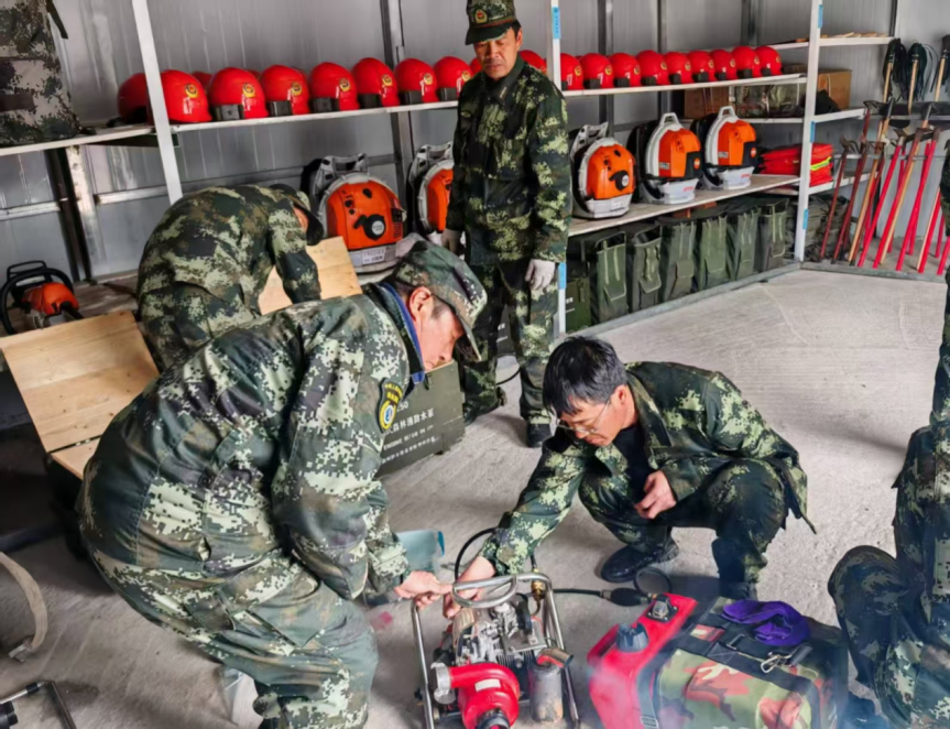 超前部署強基礎,筑牢防控“先手棋”。充分利用準備之冬”黃金期,細化完善23項防滅火預案及 26 項工作流程圖,構(gòu)建起層次分明、流程順暢的防控指南。全年開展指揮員、瞭望員、無人機操作等各類培訓25次,覆蓋893名干部職工,實現(xiàn)防控隊伍專業(yè)能力全面提升。同時完成110臺車輛、380臺套滅火機具、241臺套通訊設備的全面檢修,物資儲備到位率、設備完好率均達100%。350 人專業(yè)消防大隊、22座瞭望塔、43個管護站等力量精準布防,形成“預案、宣傳、機械、物資、隊伍、人員”六到位的防控格局,為實戰(zhàn)奠定堅實基礎。