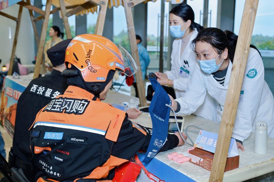 秋冬季節(jié)多發(fā)流感,全國(guó)各地、各級(jí)工會(huì)等主管部門聯(lián)合淘寶閃購,持續(xù)開展暖冬物資發(fā)放、免費(fèi)體檢等活動(dòng)。在貴陽、銀川、溫州、武漢等城市,騎士日活動(dòng)還設(shè)置了專門的體檢車,為騎士提供便捷的健康檢查,在南京、成都等地開展義診。