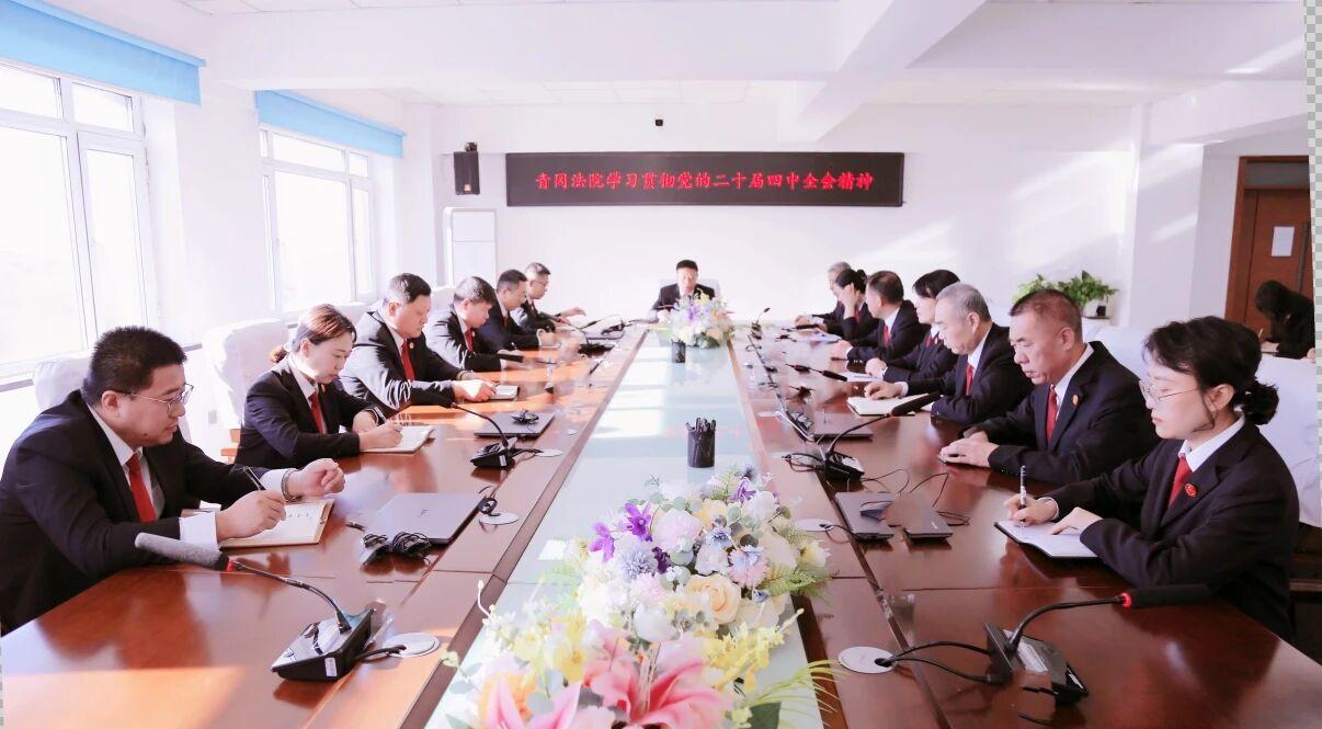 會議指出,黨的二十屆四中全會是在向第二個百年奮斗目標(biāo)進(jìn)軍的關(guān)鍵節(jié)點召開的一次十分重要的會議,全會審議通過的《中共中央關(guān)于制定國民經(jīng)濟(jì)和社會發(fā)展第十五個五年規(guī)劃的建議》為“十五五”時期經(jīng)濟(jì)社會發(fā)展繪就了宏偉藍(lán)圖,也為新時代法院工作指明了前進(jìn)方向、提供了根本遵循。全院上下要深刻認(rèn)識黨的二十屆四中全會的重大意義,切實把思想和行動統(tǒng)一到黨中央決策部署上來,以釘釘子精神抓好落實,推動全會精神在青岡法院落地生根、開花結(jié)果。