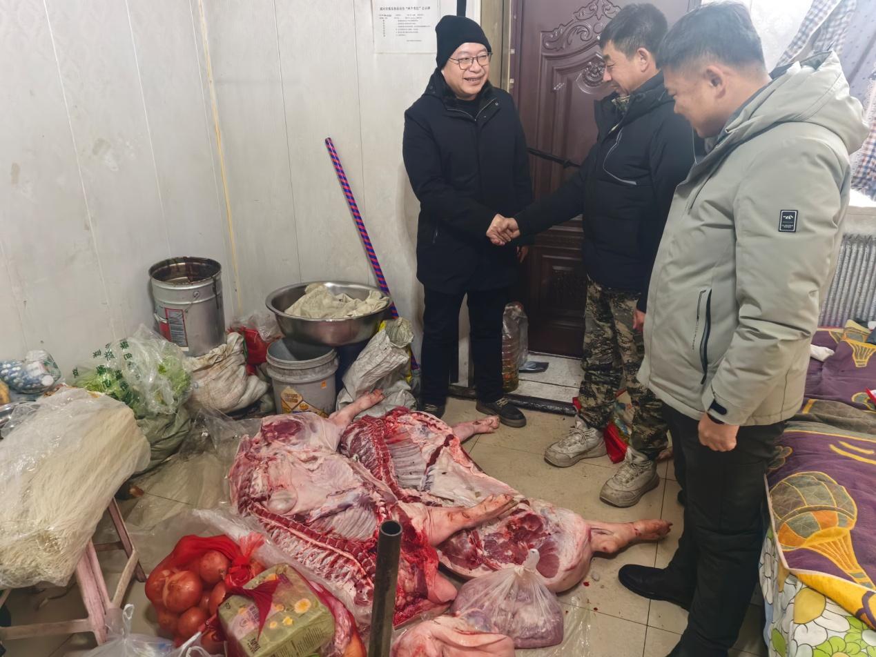 “冬季深山作業(yè),職工的御寒保暖和飲食保障是我們最牽掛的事?!背焙恿謭鍪冀K堅持“職工的‘心上事’就是林場的‘要緊事’”理念,提前與各作業(yè)組精準(zhǔn)對接,深入了解一線實際困難與需求,針對性籌備慰問物資。深入冬季營林生產(chǎn)作業(yè)點,開展歲末一線慰問活動,慰問車隊滿載 390 斤豬肉、新鮮水果、各類蔬菜、防寒棉衣、保暖手套等冬季防護用品和生活物資。抵達作業(yè)點后,慰問組詳細查看了臨時板房的取暖設(shè)備運行、食宿環(huán)境保障等情況,仔細檢查供暖管線、消防設(shè)施等安全隱患點,確保冬季生產(chǎn)生活安全?!耙归g宿舍溫度能達到多少?”、“日常食材儲存是否方便”,詢問大家的工作生活狀況,傾聽職工訴求。針對長期駐守作業(yè)點可能出現(xiàn)的食材新鮮度不足問題,林場黨支部副書記表示,“從下周起,定期配送新鮮蔬菜,保障大家營養(yǎng)均衡,讓大家吃得放心、干得舒心。”營林副場長圍繞冬季營林作業(yè)規(guī)范、機械設(shè)備防寒維護等內(nèi)容開展專業(yè)指導(dǎo),提醒隊員們嚴(yán)守安全生產(chǎn)規(guī)程,做好防寒防凍措施,確保生產(chǎn)安全與作業(yè)質(zhì)量雙達標(biāo)。
