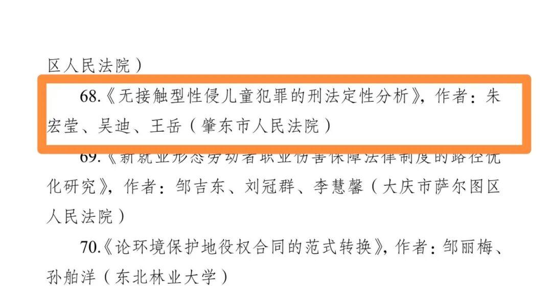其中,督察室負(fù)責(zé)人楊紅梅、審管辦副主任朱宏瑩、審管辦副主任常亮撰寫的論文《中間人截賄行為的司法認(rèn)定研究》,榮獲三等獎(jiǎng);審管辦副主任朱宏瑩、五站人民法庭負(fù)責(zé)人吳迪、審管辦書記員王岳撰寫的論文《無接觸型性侵兒童犯罪的刑法定性分析》,榮獲優(yōu)秀獎(jiǎng);刑庭法官助理張瑩、刑庭庭長(zhǎng)王帝撰寫的論文《涉訴信訪治理機(jī)制研究》,榮獲優(yōu)秀獎(jiǎng)。