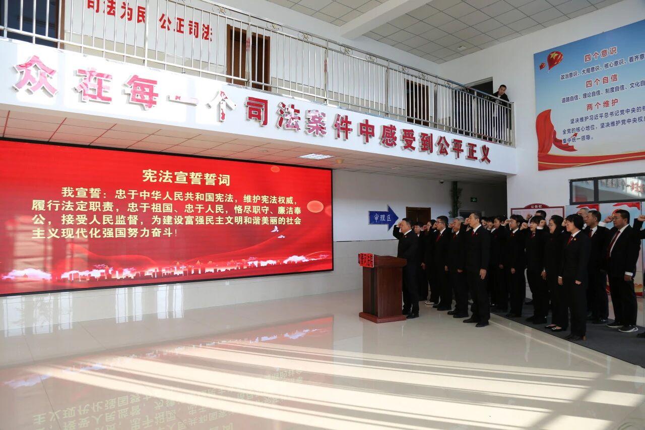 孫長久院長左手撫按憲法,舉起右拳,高聲領(lǐng)誓,各位干警莊嚴(yán)宣誓——“我宣誓:忠于中華人民共和國憲法,維護憲法權(quán)威,履行法定職責(zé),忠于祖國、忠于人民,恪盡職守、廉潔奉公,接受人民監(jiān)督,為建設(shè)富強民主文明和諧美麗的社會主義現(xiàn)代化強國努力奮斗!”