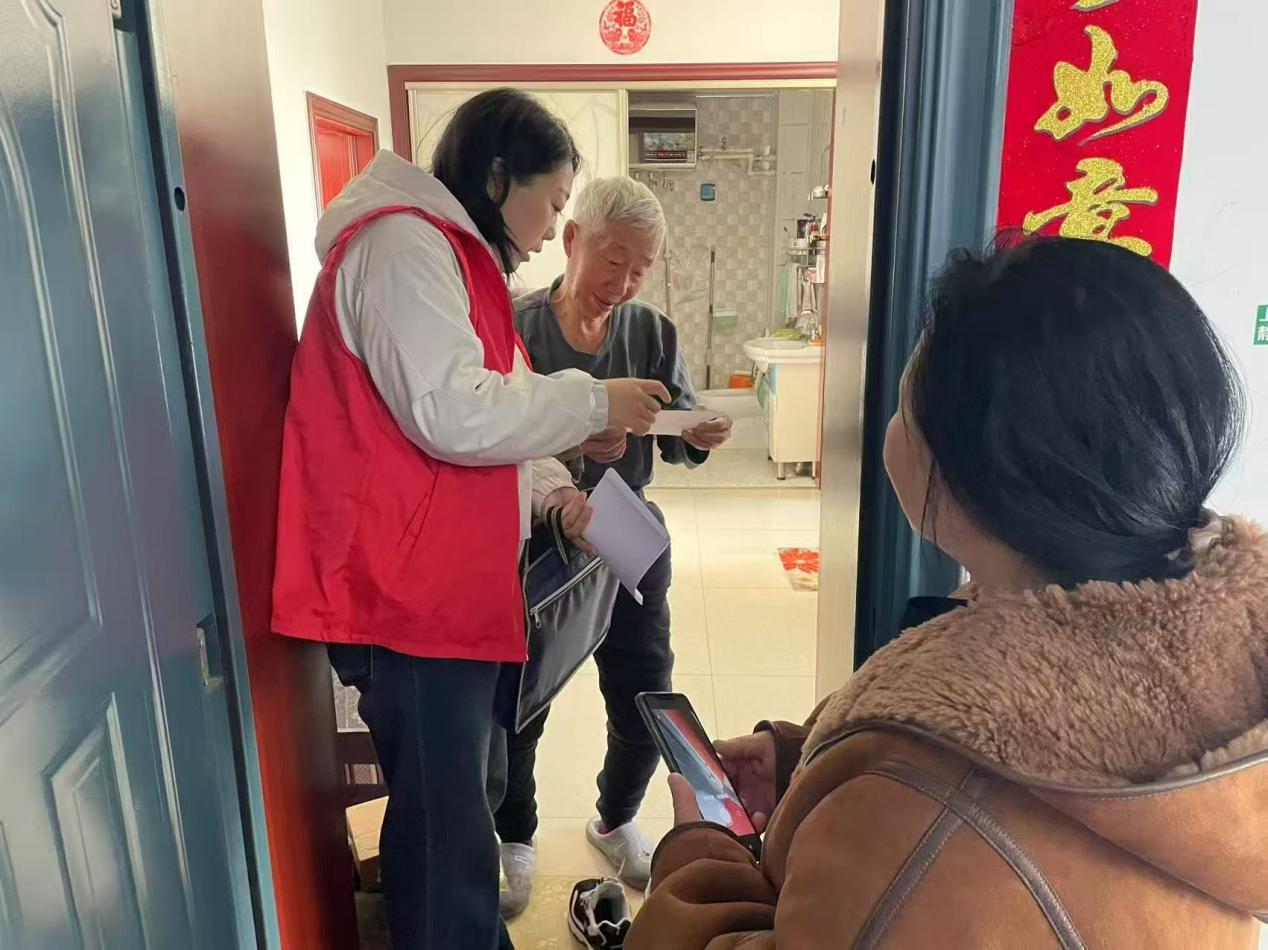 社區(qū)志愿者“敲門入戶”開展弱勢群體消防安全宣傳活動(胡春磊 攝)