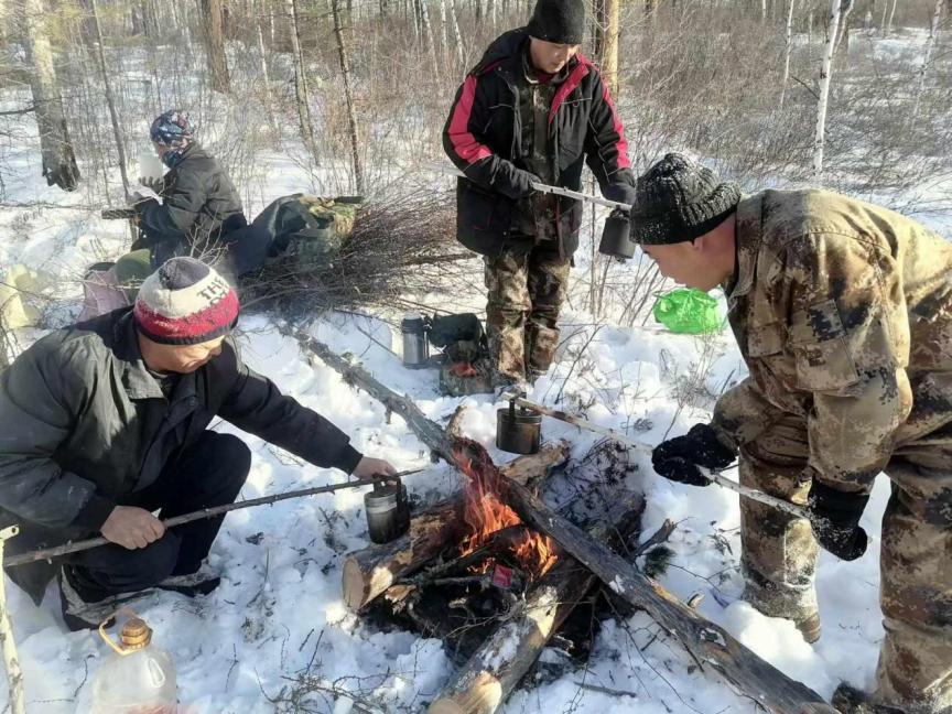 餐風(fēng)飲雪不言苦,苦中作樂顯擔(dān)當(dāng)。正午時分,忙碌的作業(yè)暫告一段落,林間背風(fēng)處便成了臨時“餐桌”。職工們聚在一起,圍坐在火堆旁,就著寒風(fēng),分享著熱氣騰騰的盒飯。沒有舒適的就餐環(huán)境,只有白雪皚皚的林海作伴;沒有豐盛的佳肴,只有簡單的飯菜暖胃暖心。大家邊吃邊聊,交流著當(dāng)天的作業(yè)進度,分享著林區(qū)里的新鮮事,爽朗的笑聲回蕩在林間。艱苦的條件絲毫沒有消減大家的干勁,反而凝聚起攻堅克難的強大合力,這便是育英林場人獨有的“苦中作樂”,更是對綠水青山的執(zhí)著堅守。